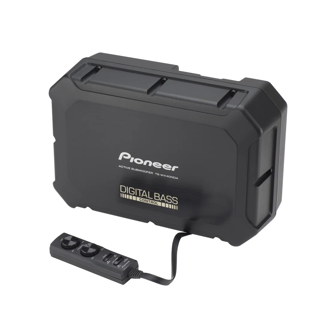 The Pioneer TS-WX400DA is a compact, active subwoofer designed to deliver powerful bass in limited spaces. Featuring a built-in 100W RMS (250W peak) Class D amplifier, a down-firing 9″ x 5.5″ rectangular cone, and Pioneer’s DIGITAL BASS CONTROL, it offers two selectable bass modes—DEEP and DYNAMIC—to suit various music genres and vehicle acoustics. Its slim profile allows for installation under seats or in other tight spaces, making it ideal for vehicles where space is a premium.