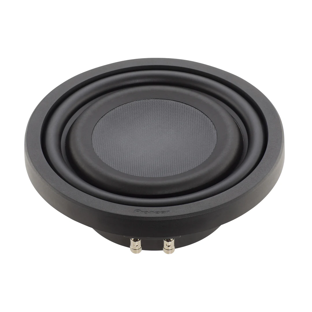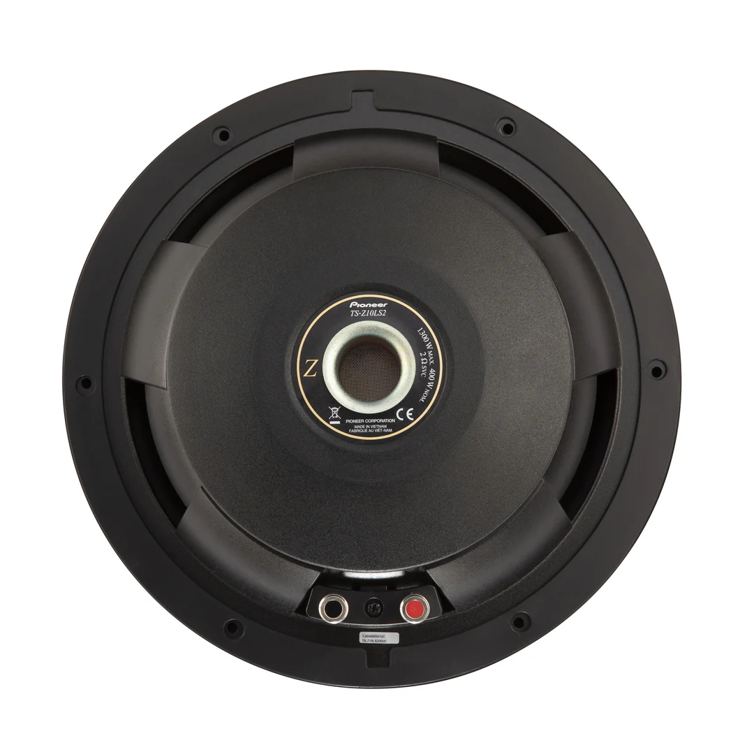 The Pioneer TS-Z10LS2 is a 10-inch shallow-mount subwoofer from the Z-Series, engineered to deliver deep, powerful bass in compact spaces. With a 400W RMS (1300W peak) rating, it features a dual-layer cone made of Twaron® aramid fiber and cellulose fiber, a 4-layer copper voice coil, and a shallow basket design for flexible installation. Its frequency response range of 20 Hz to 3.8 kHz ensures accurate and detailed bass reproduction, making it ideal for audiophiles seeking high-performance sound in limited spaces.