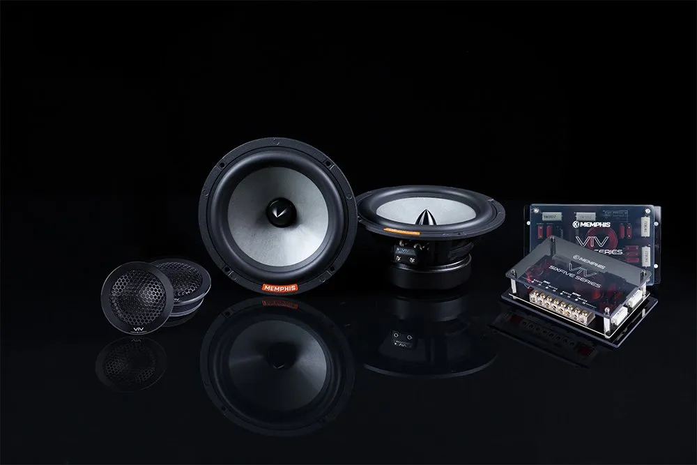 The VIV60CV2 is a 6.5″ 2-way component speaker set from Memphis Audio’s SixFive (VIV) series, engineered for high-fidelity and accurate mid-bass response. It features a dual-layer composite fiber cone for lightness and rigidity, a butyl rubber surround, and a cast aluminum basket. The kit includes silk-dome tweeters housed in aluminum, plus bi-ampable external crossovers with multiple tuning options. Rated for 80 W RMS and 160 W peak, this set is ideal for music lovers looking for clarity, low distortion, and a flat, natural sound.